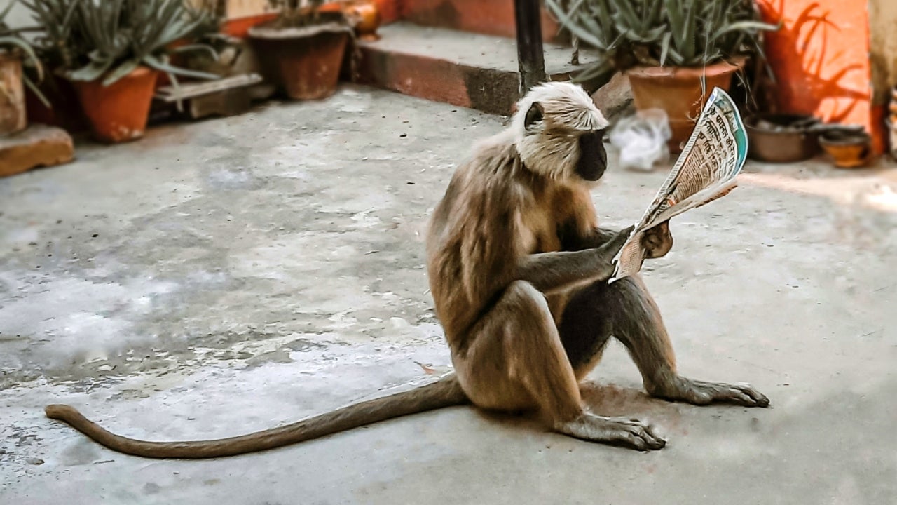 Monkey reading newspaper